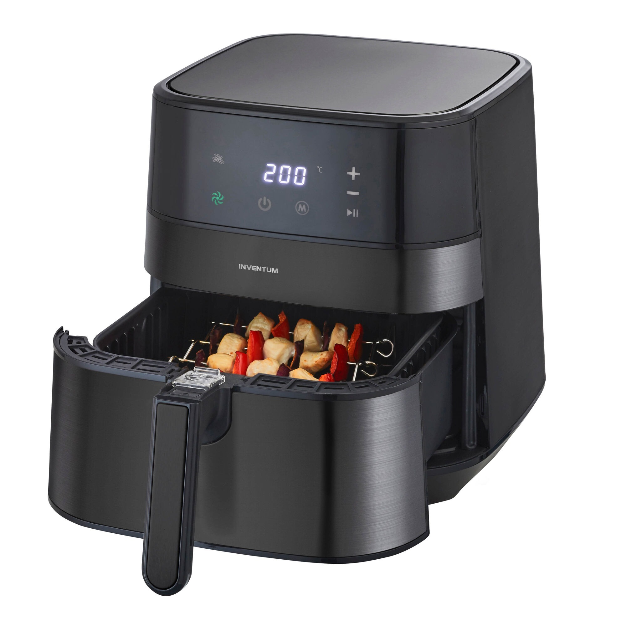 Met de Inventum GF500HLDB maak je de patat en snacks alleen door hetelucht. Hierdoor wordt de maaltijd minder vet. De airfryer heeft een inhoud van vijf liter. Hiermee kan anderhalve kilo friet worden gebakken. Het digitale display geeft de tijd die nog nodig is om de maaltijd te bakken. Met de tiptoetsen stel je de temperatuur en tijd in. De Inventum GF500HLDB beschikt over acht automatische programma’s. De pan en frituurmand zijn makkelijk schoon te maken in de vaatwasser.